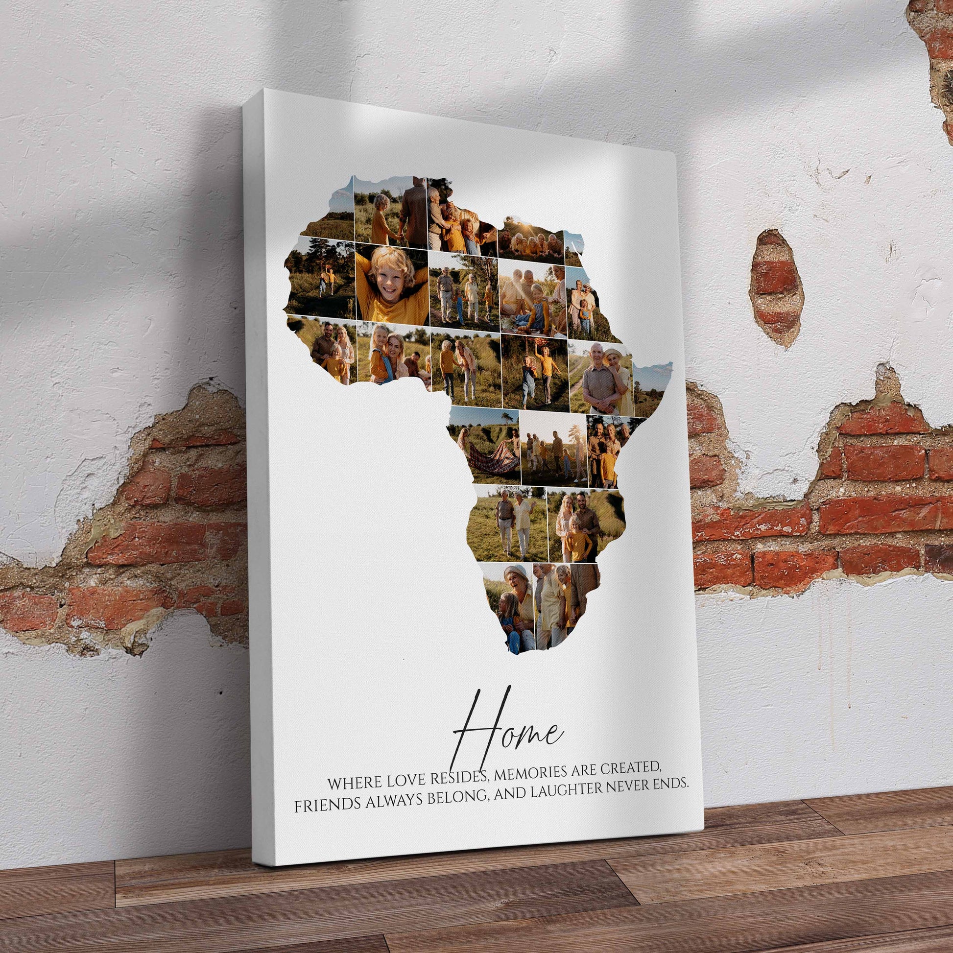 Celebrate your roots and heritage with this stunning personalised Africa-shaped photo collage canvas. Thoughtfully designed to showcase your favourite memories, the unique Africa silhouette is filled with your most cherished photos. Perfect for honouring your African pride or as a meaningful gift for loved ones, this canvas adds a vibrant and personal touch to any space.