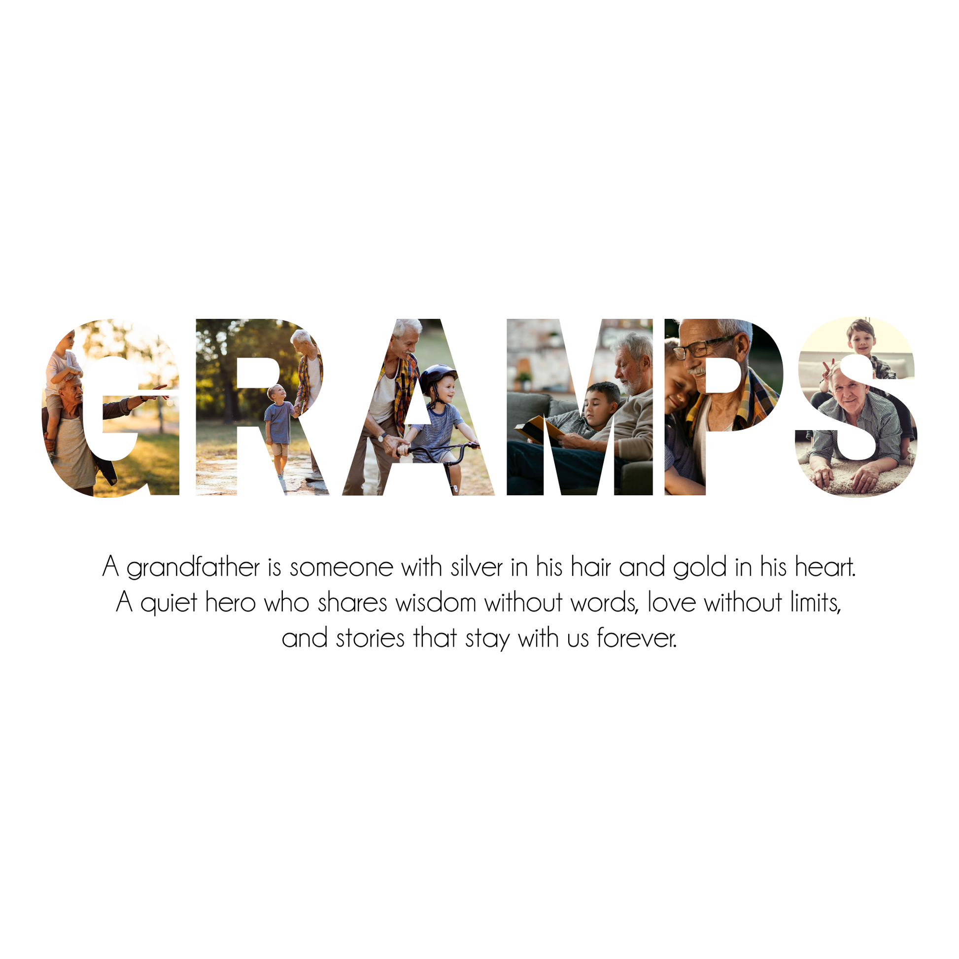 Celebrate Grandpa with a personalised photo collage canvas that captures his most cherished moments. Designed with love, this unique canvas allows you to fill bold letters with your favourite photos.