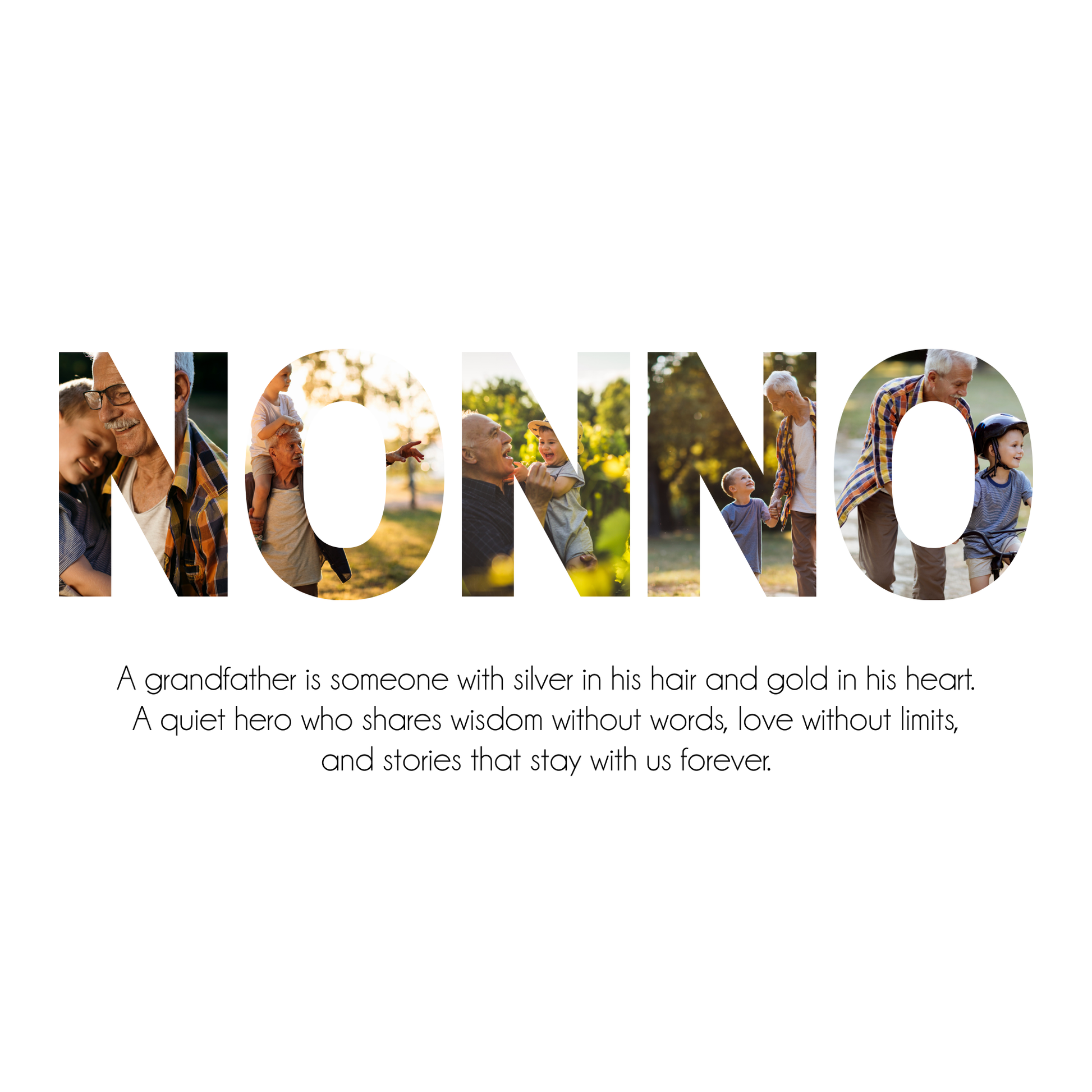Celebrate Nonno with a personalised photo collage canvas that captures her most cherished moments. Designed with love, this unique canvas allows you to fill bold letters with your favourite photos.