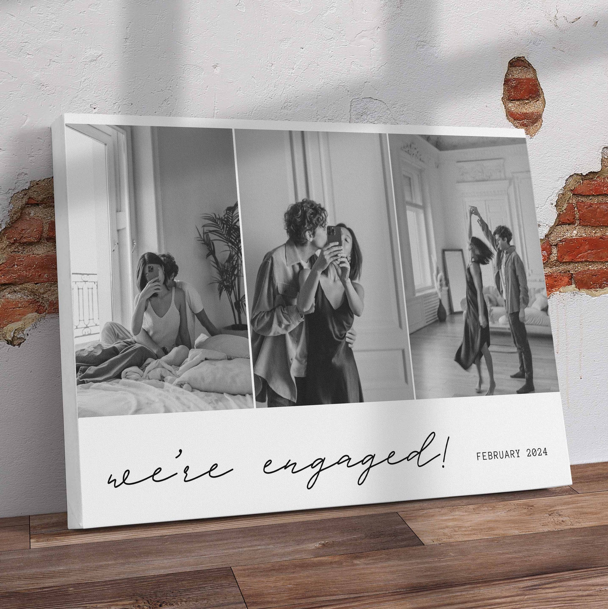 Celebrate your engagement with a stunning personalised photo collage canvas that beautifully captures your love story. Perfect for commemorating your engagement, this canvas can be personalised with your engagement date, making it a lasting keepsake. Whether as a display in your home or a thoughtful gift for loved ones, this collage is a perfect way to announce and celebrate your love and new journey together.